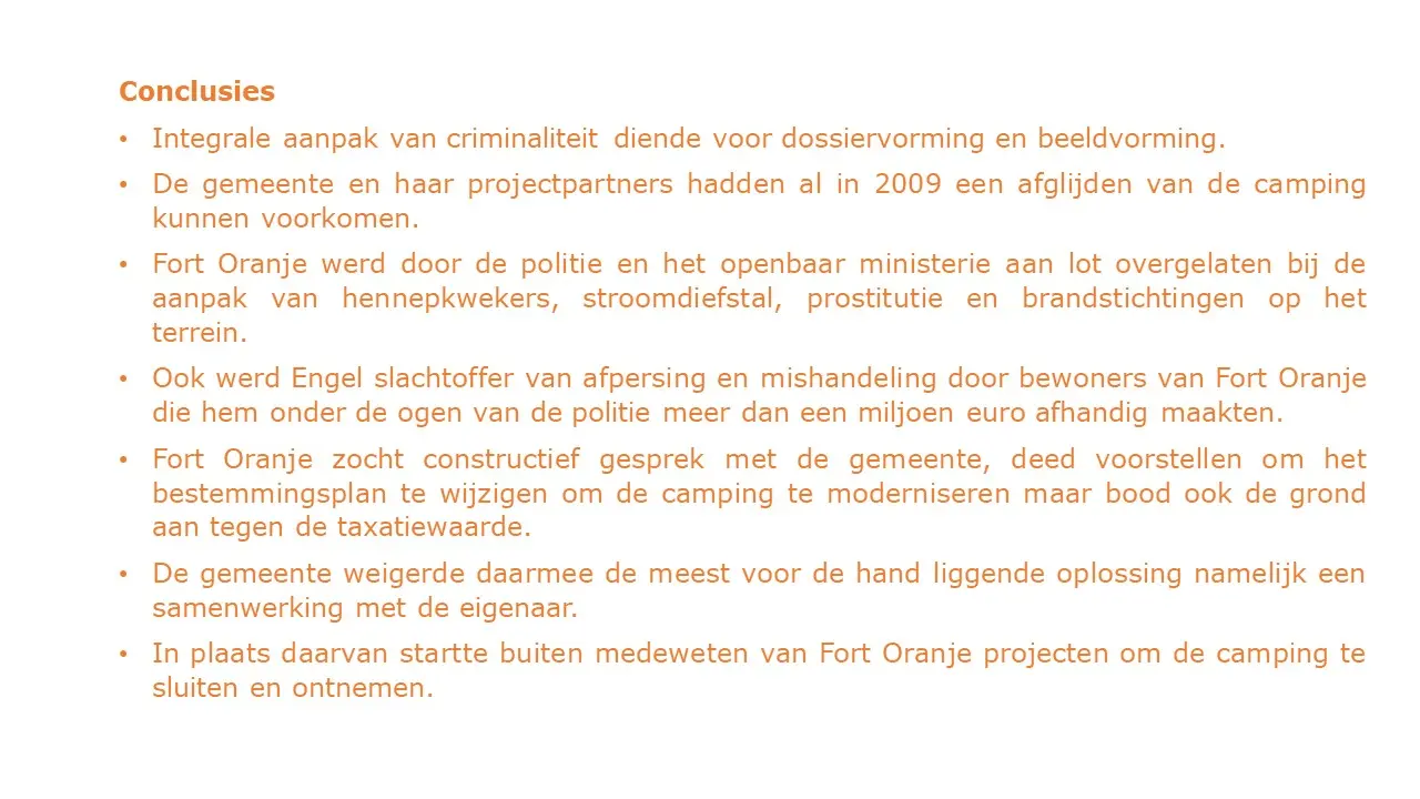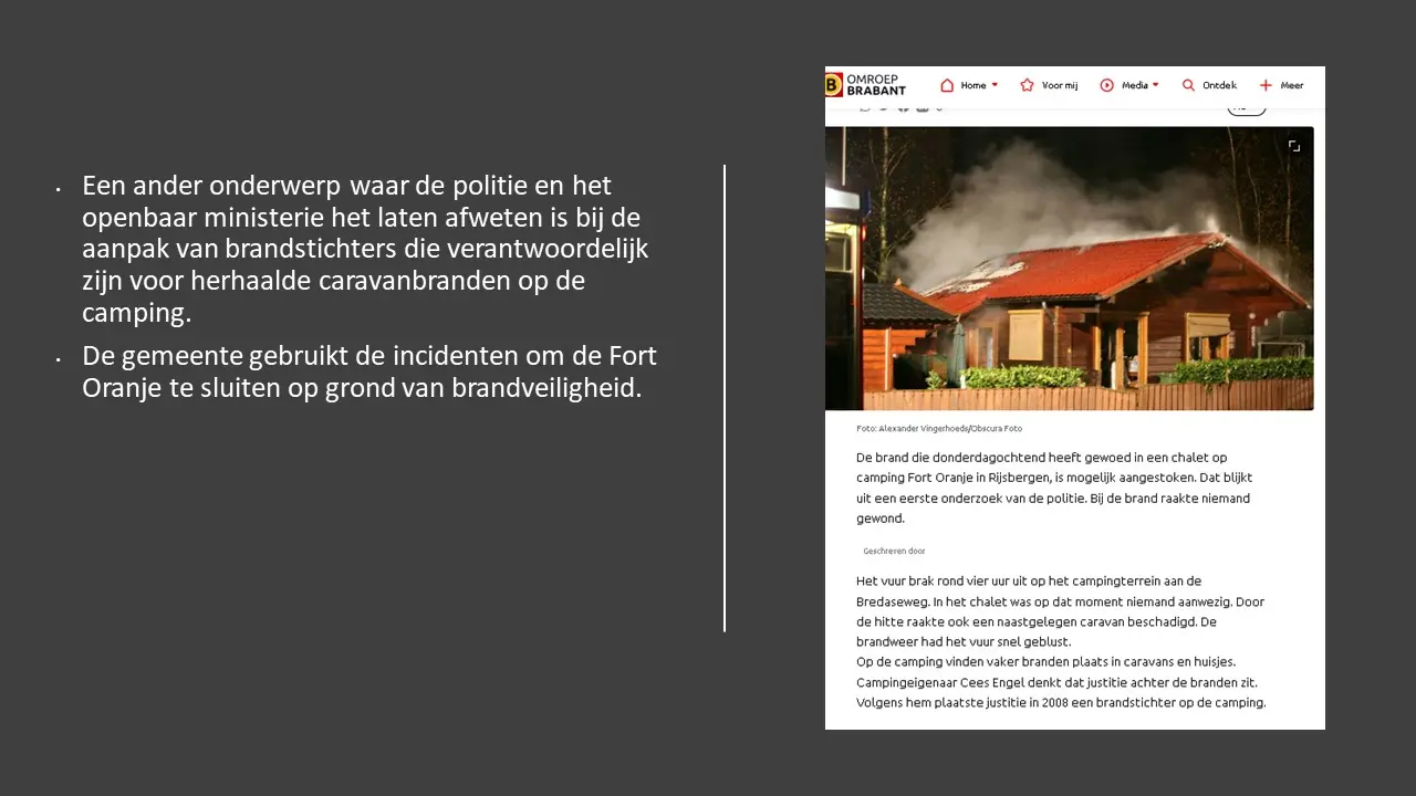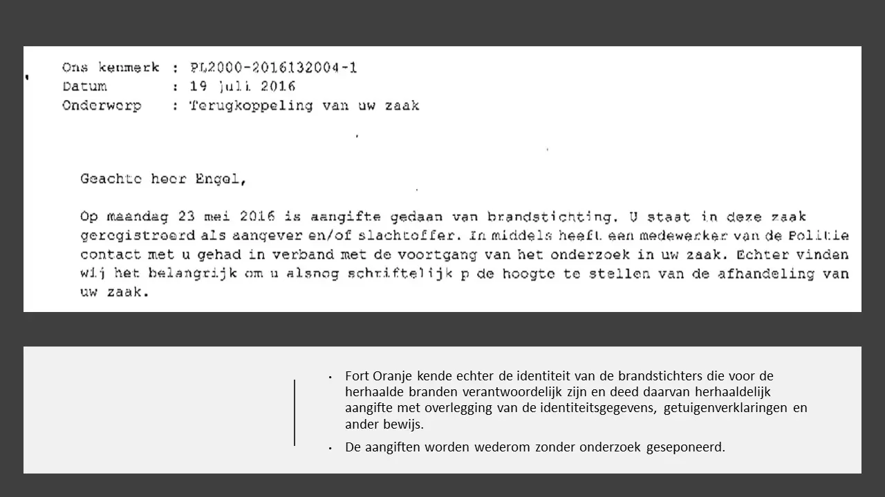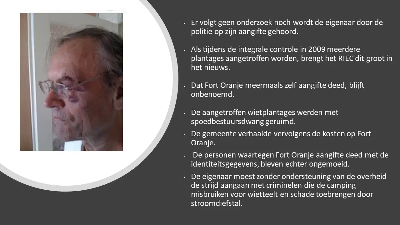 In deze aflevering laten Jeroen en Willem zien dat, in tegenstelling tot wat de gemeente in de media verkondigde, er inderdaad criminaliteit was, waarbij de eigenaar van Fort Oranje meerder keren om hulp heeft gevraagd en dat werd door de gemeente en de politie geweigerd. Sterker nog, bij brandstichting werd de dader geïdentificeerd met camerabeelden, het Openbaar Ministerie is deze kwijtgeraakt. Van illegale bewoning was absoluut geen sprake omdat in het bestemmingsplan stond dat mensen er mochten wonen. Het was een duidelijke smaad- en lastercampagne waarbij de gemeente er alles aan heeft gedaan om, in plaats van de criminaliteit te bestrijden, het juist te stimuleren, tot aan de afpersing van Cees Engel toe.Fort Oranje deel 3 – Criminaliteit en illegale bewoning.