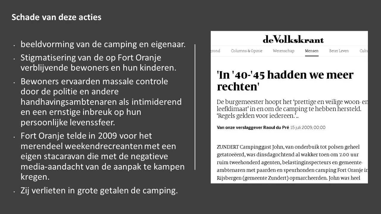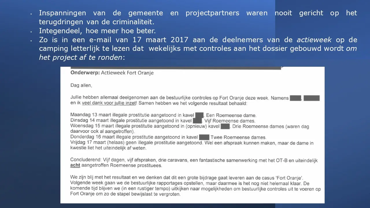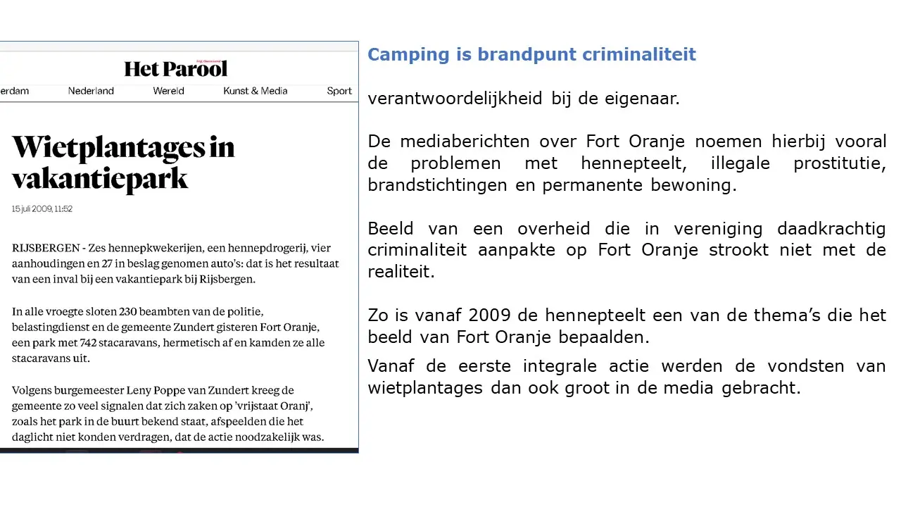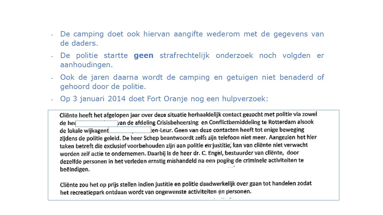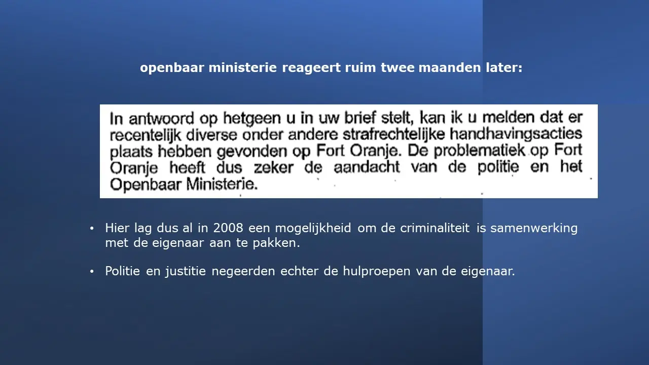 In deze aflevering laten Jeroen en Willem zien dat, in tegenstelling tot wat de gemeente in de media verkondigde, er inderdaad criminaliteit was, waarbij de eigenaar van Fort Oranje meerder keren om hulp heeft gevraagd en dat werd door de gemeente en de politie geweigerd. Sterker nog, bij brandstichting werd de dader geïdentificeerd met camerabeelden, het Openbaar Ministerie is deze kwijtgeraakt. Van illegale bewoning was absoluut geen sprake omdat in het bestemmingsplan stond dat mensen er mochten wonen. Het was een duidelijke smaad- en lastercampagne waarbij de gemeente er alles aan heeft gedaan om, in plaats van de criminaliteit te bestrijden, het juist te stimuleren, tot aan de afpersing van Cees Engel toe.Fort Oranje deel 3 – Criminaliteit en illegale bewoning.
