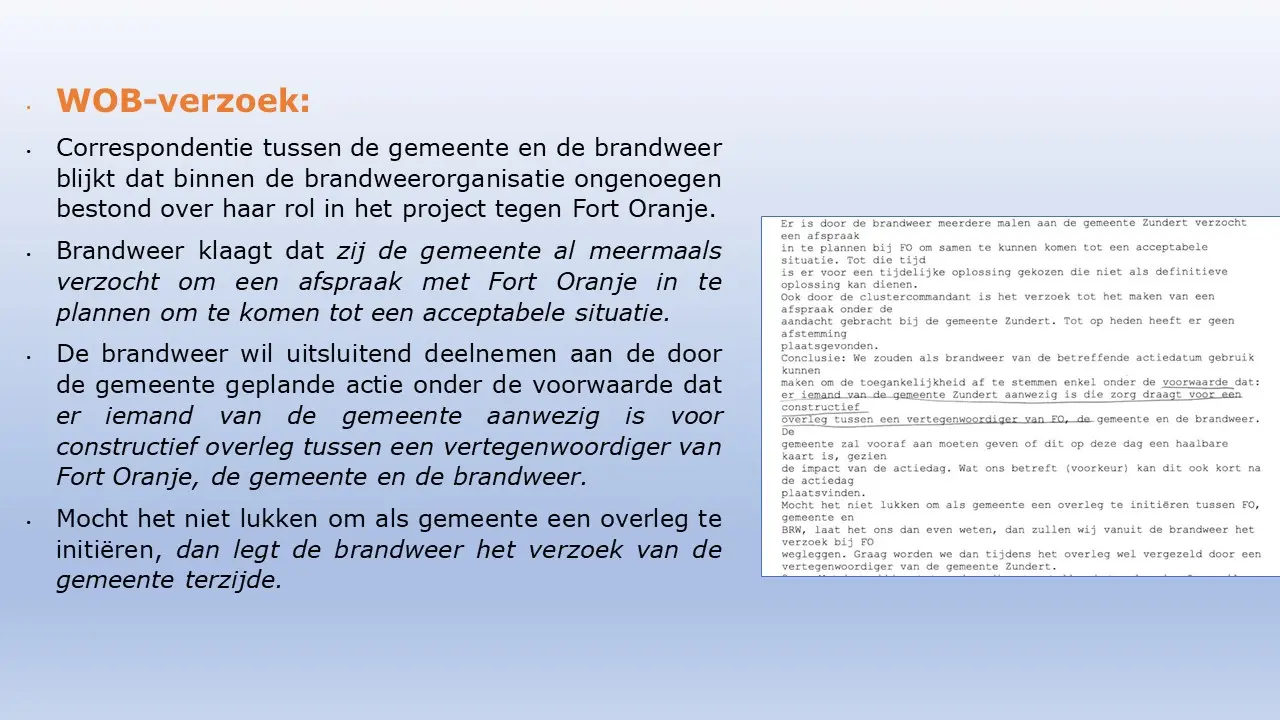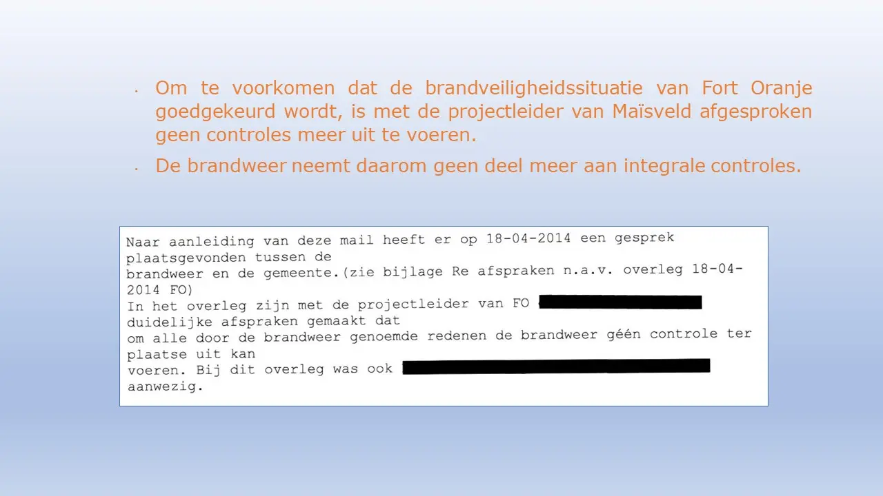 In deel vier van de serie over Fort Oranje spreken Jeroen en Willem over de eerste poging van het RIEC om Fort Oranje buiten de wet te ontnemen. Zij zoomen in op de poging om dat via de brandweer te doen, die de blusinstallatie keer op keer afkeurde. De brandweer is betrapt op fraude en sabotage bij de metingen, daarna wilde de brandweer niet meer meewerken met de gemeente.