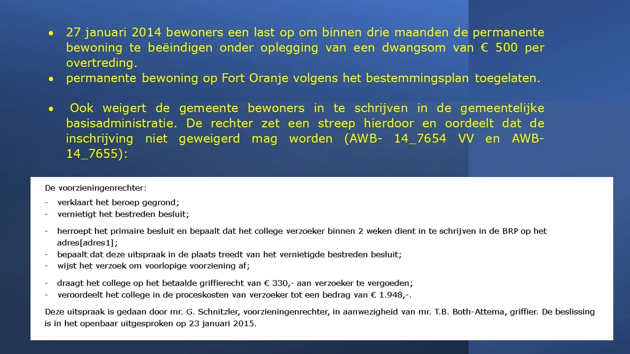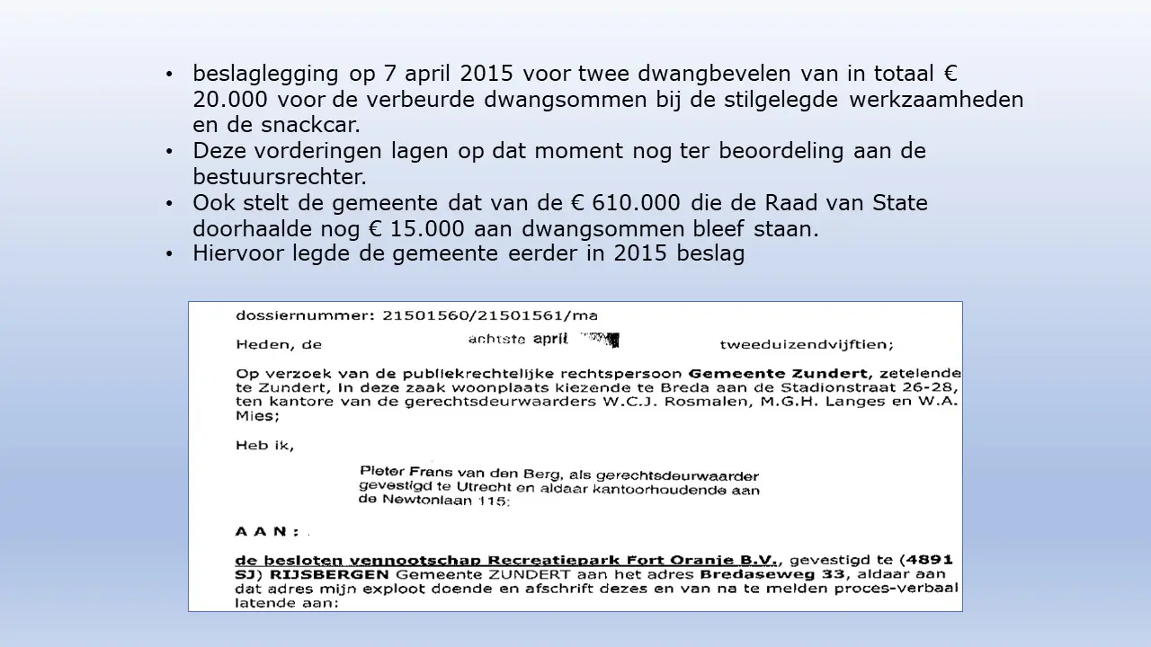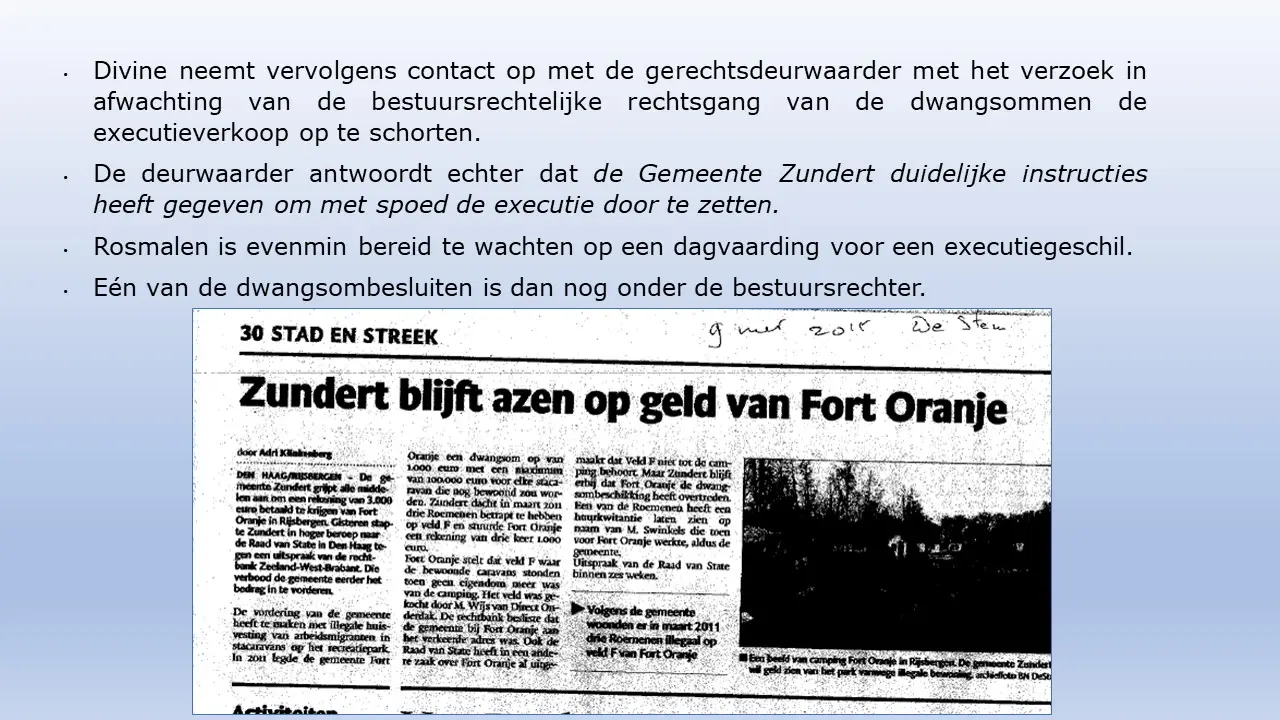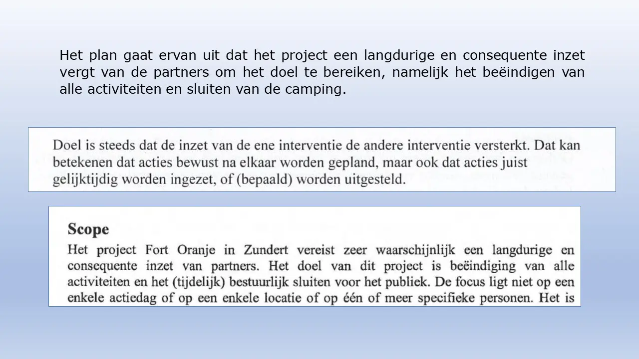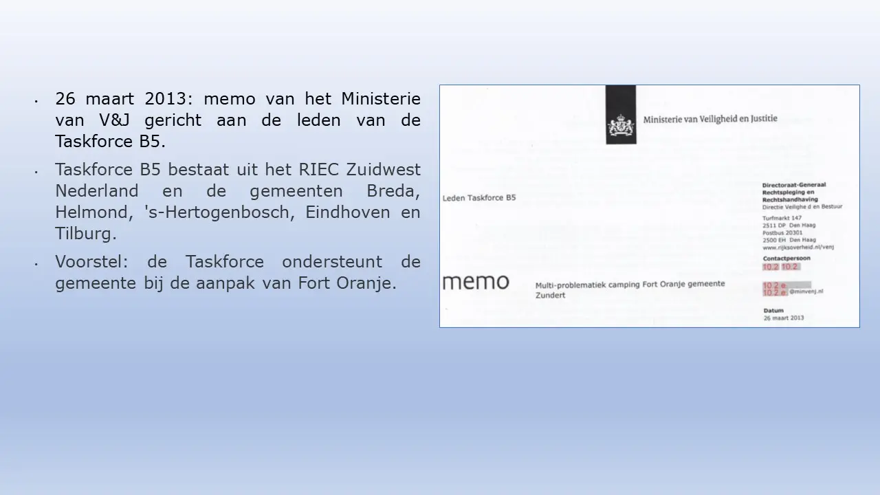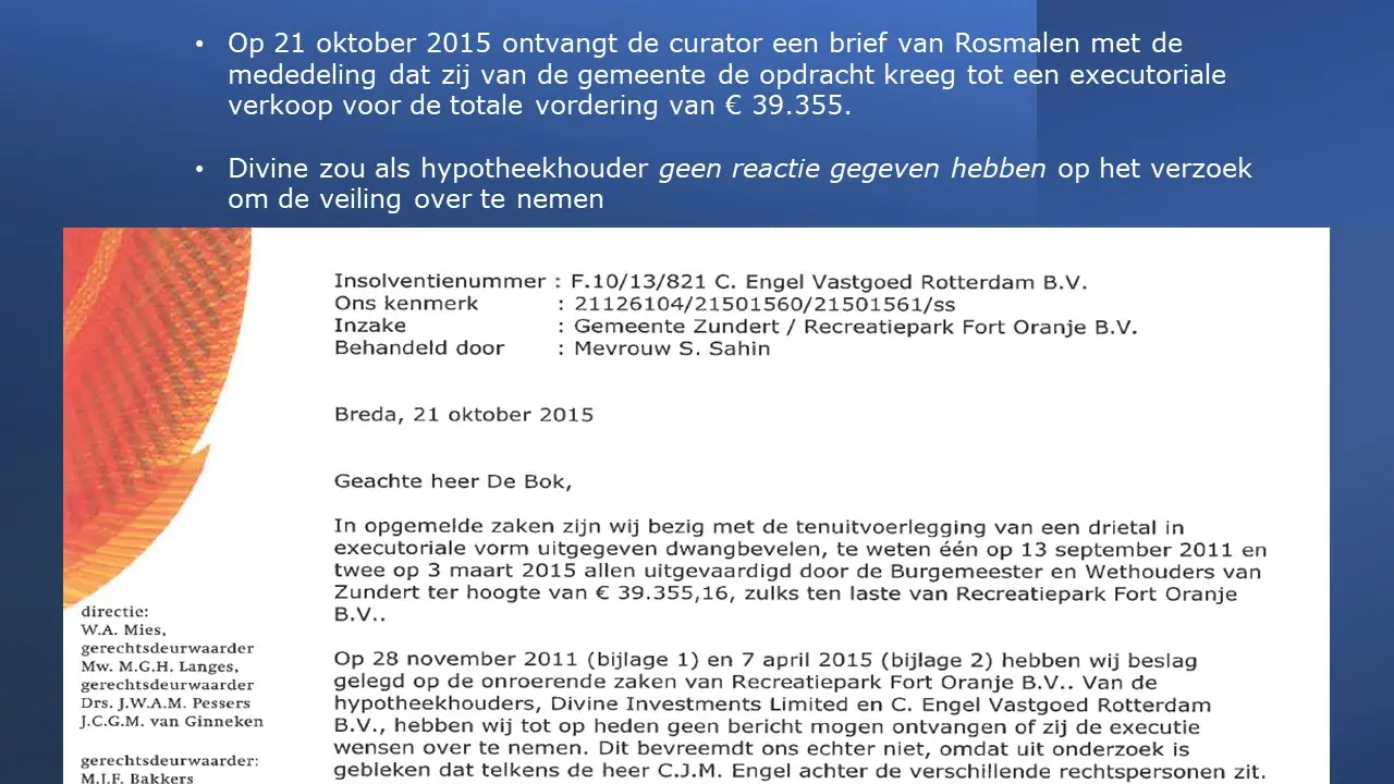 Zij bespreken dit aan de hand van allerlei verstoringsacties van het RIEC, die door het inzetten van de Belastingdienst tot curatoren tot privébedrijven alles proberen om camping Fort Oranje te onteigenen.