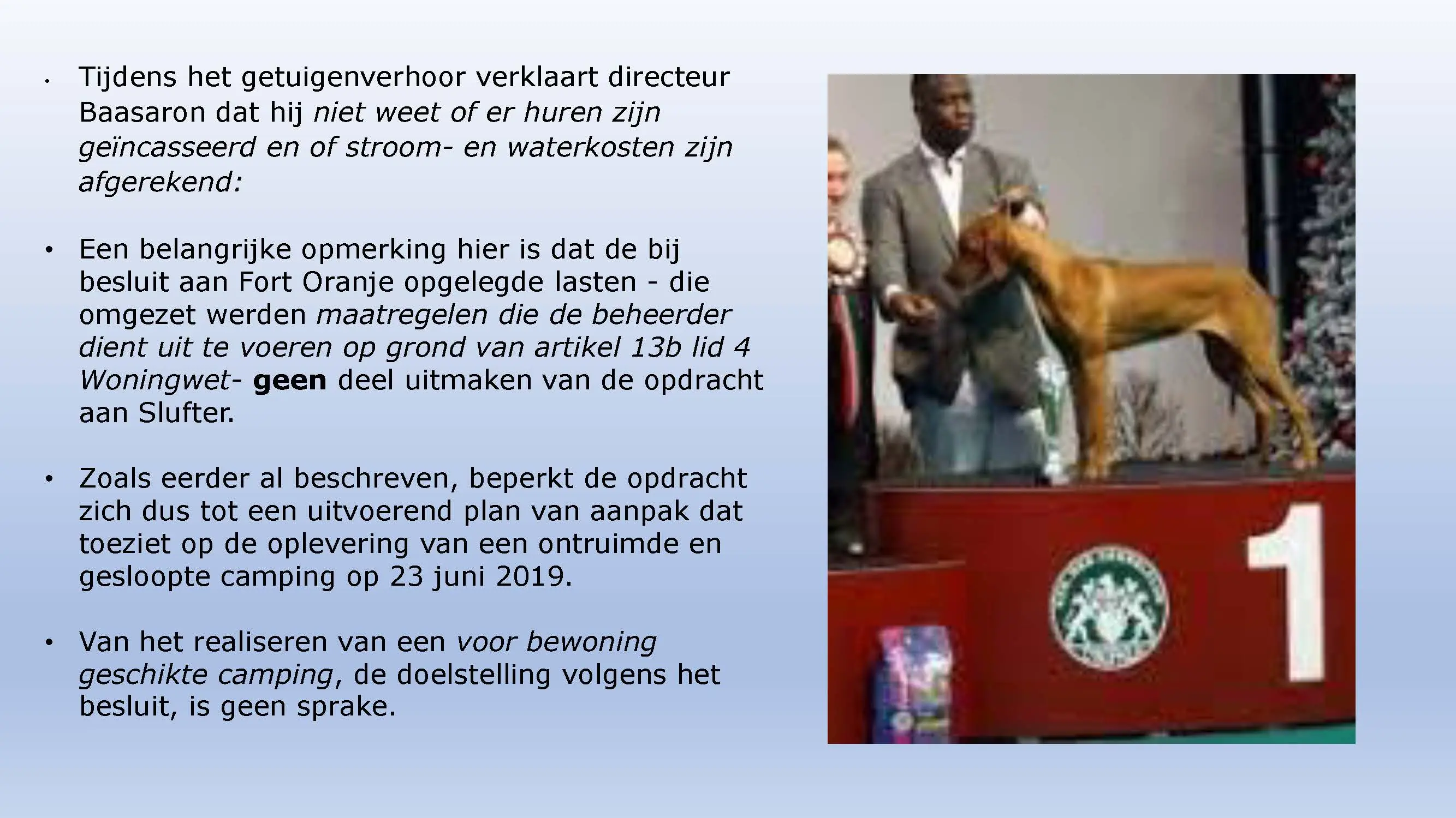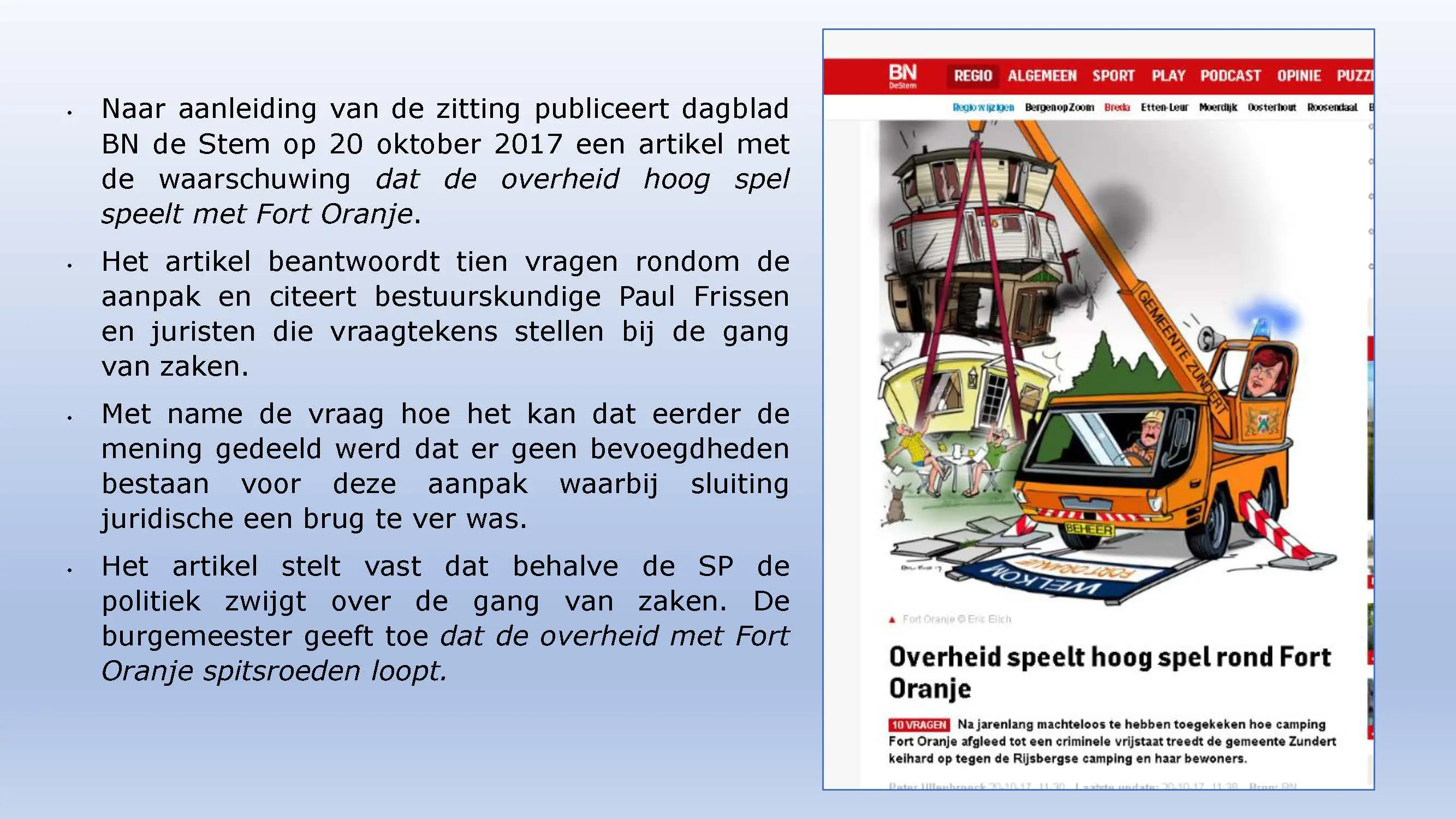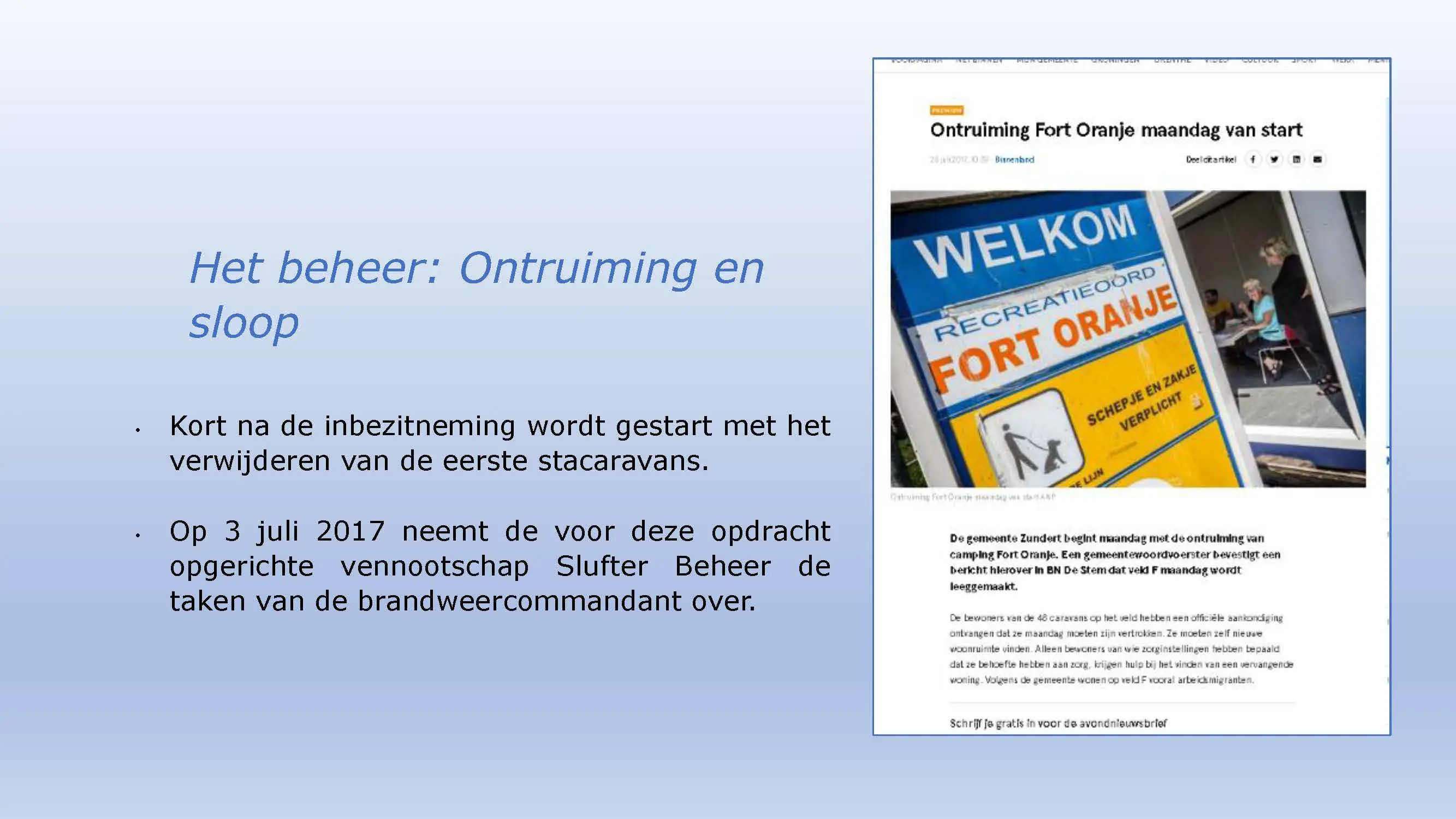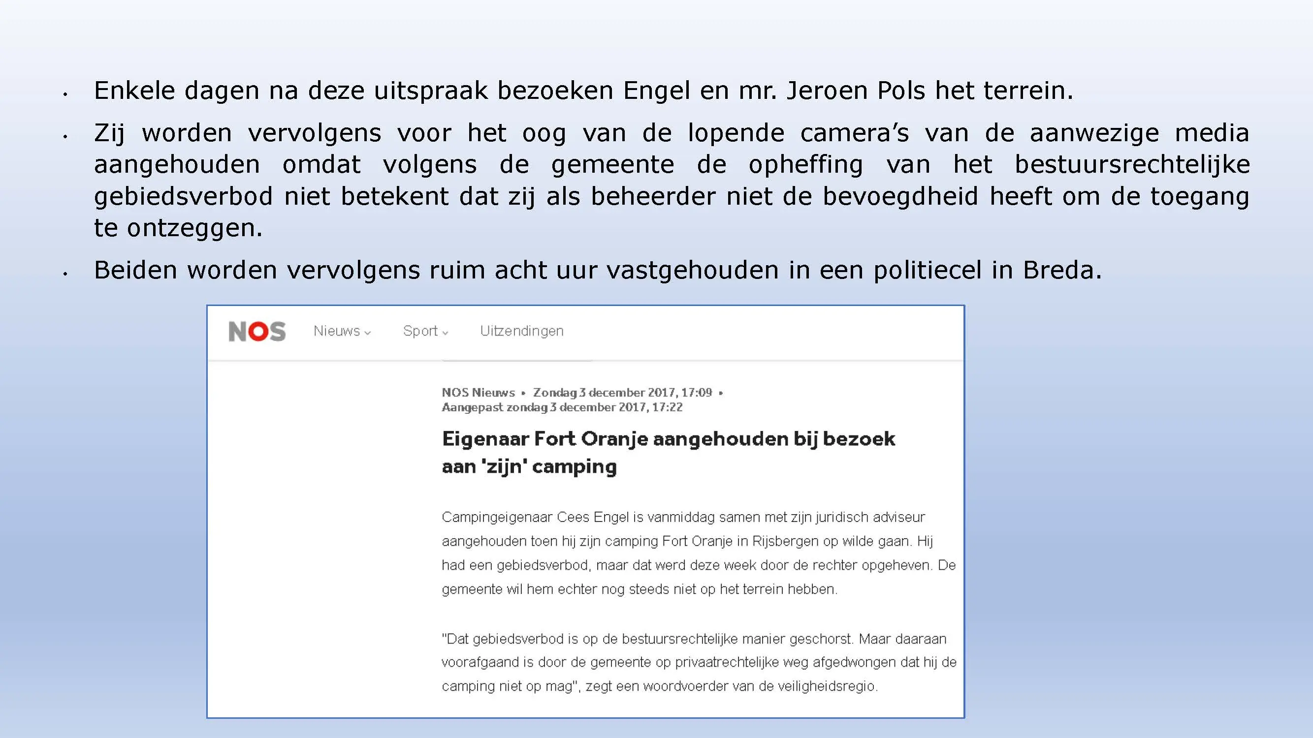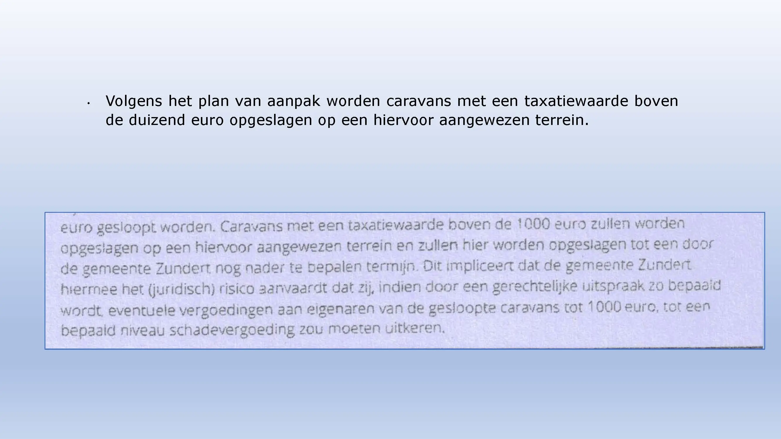 Wat hebben ze daarna gedaan? Vooral bedrog gepleegd, valsheid in geschrifte, rechters voorgelogen. Zelfs de media zich ging afvragen of het optreden van het bestuur nog wel rechtmatig was. Ondanks dat er al vaststond dat er geen bevoegdheden waren, is de camping in beslag genomen, is de eigenaar gearresteerd door middel van een gebiedsverbod, en zijn alle caravans afgevoerd en gesloopt geheel tegen het plan van aanpak in. Volgende week nemen Jeroen en Willem de rekeningen door, namelijk alle beslagen en alle kosten die werden neergelegd bij de eigenaar om het plan te bewerkstelligen dat ie de camping niet meer van de hand kon doen.