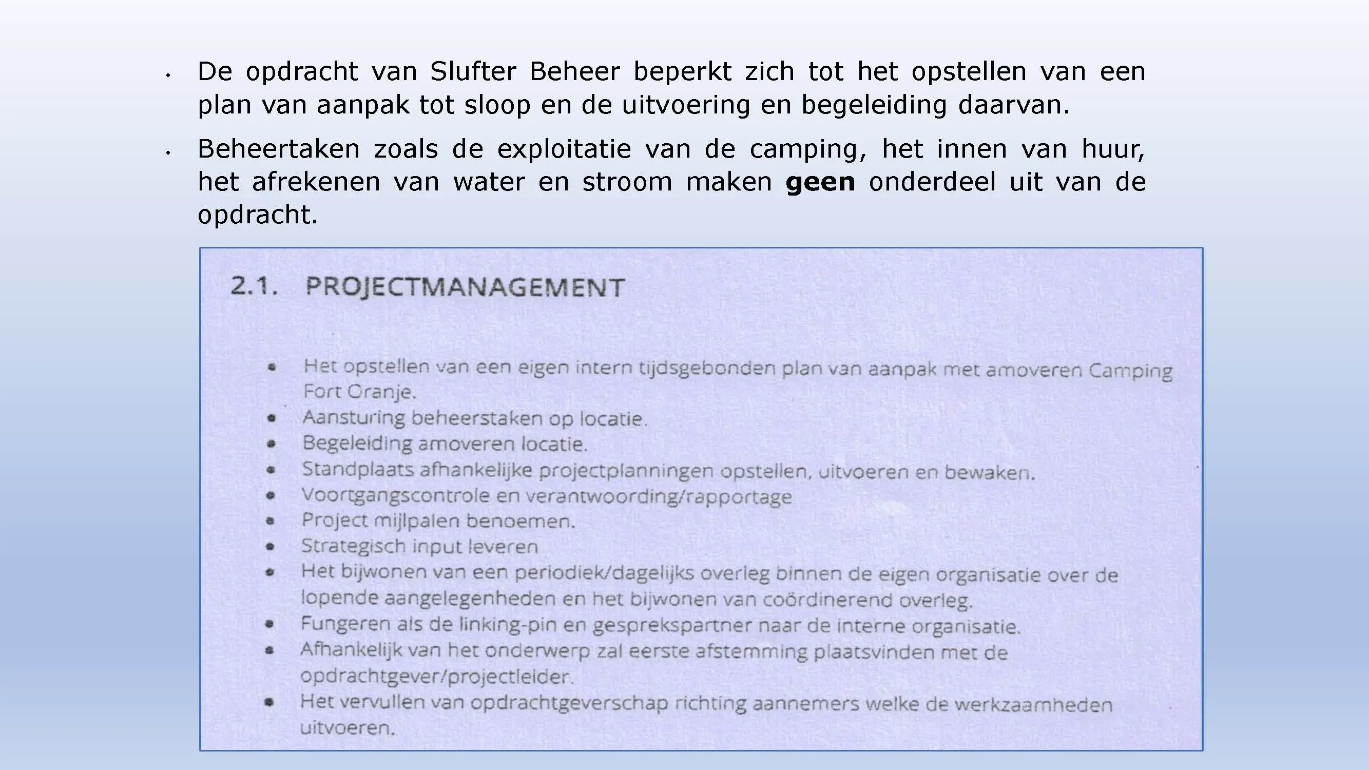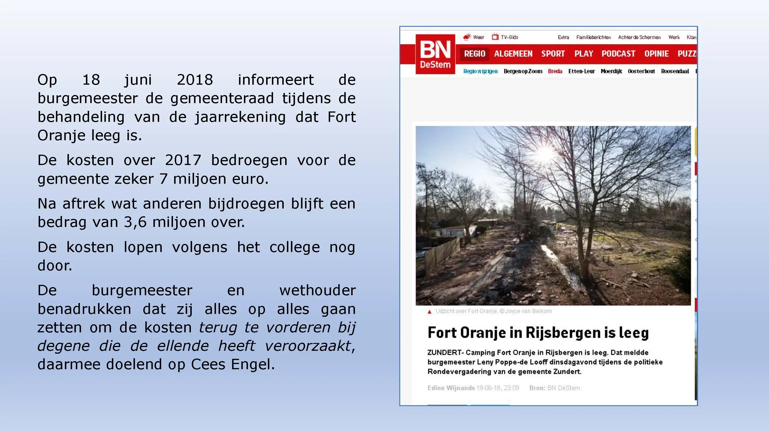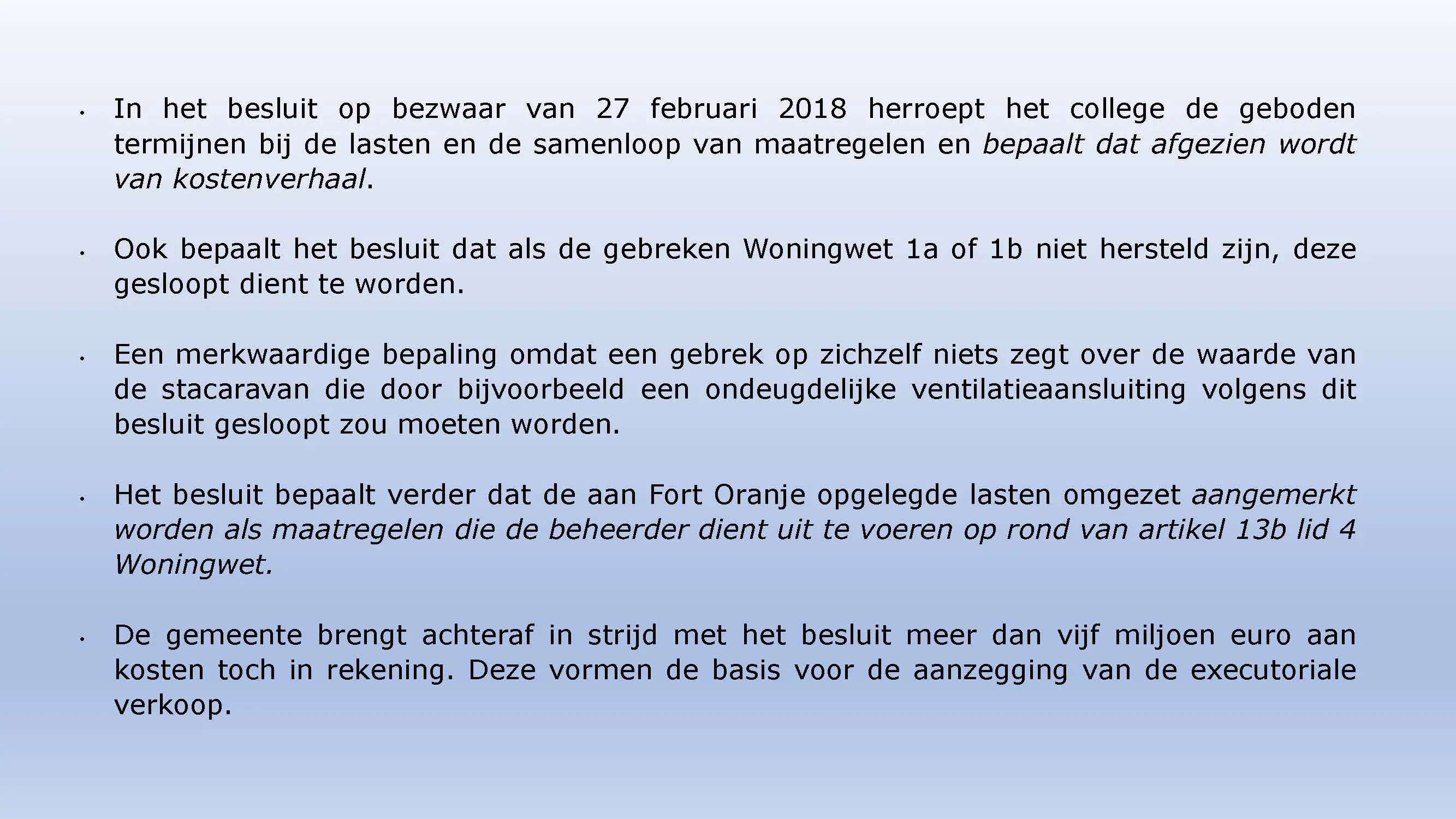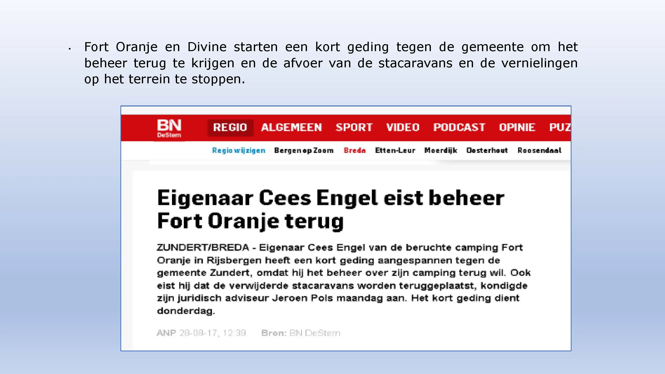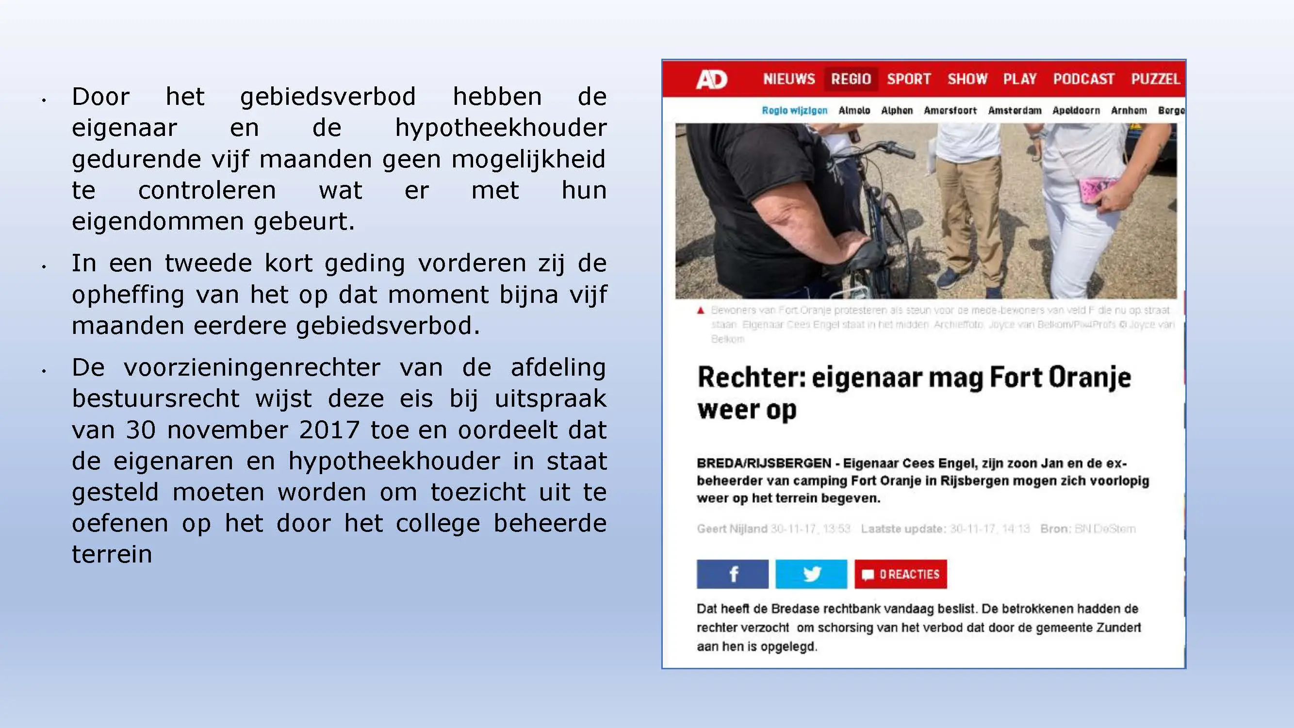 Wat hebben ze daarna gedaan? Vooral bedrog gepleegd, valsheid in geschrifte, rechters voorgelogen. Zelfs de media zich ging afvragen of het optreden van het bestuur nog wel rechtmatig was. Ondanks dat er al vaststond dat er geen bevoegdheden waren, is de camping in beslag genomen, is de eigenaar gearresteerd door middel van een gebiedsverbod, en zijn alle caravans afgevoerd en gesloopt geheel tegen het plan van aanpak in. Volgende week nemen Jeroen en Willem de rekeningen door, namelijk alle beslagen en alle kosten die werden neergelegd bij de eigenaar om het plan te bewerkstelligen dat ie de camping niet meer van de hand kon doen.