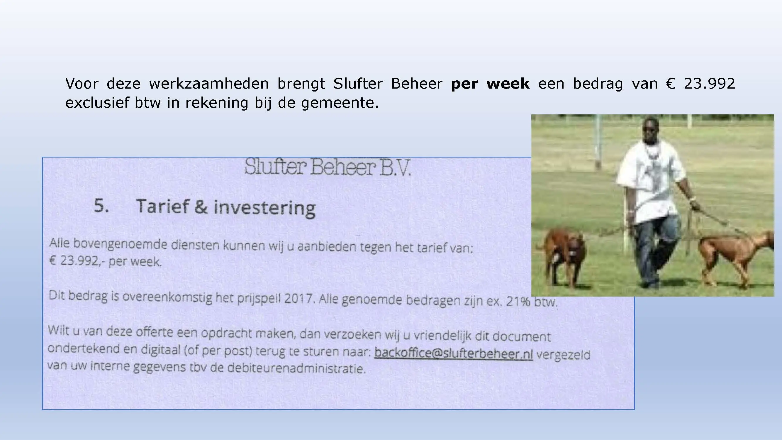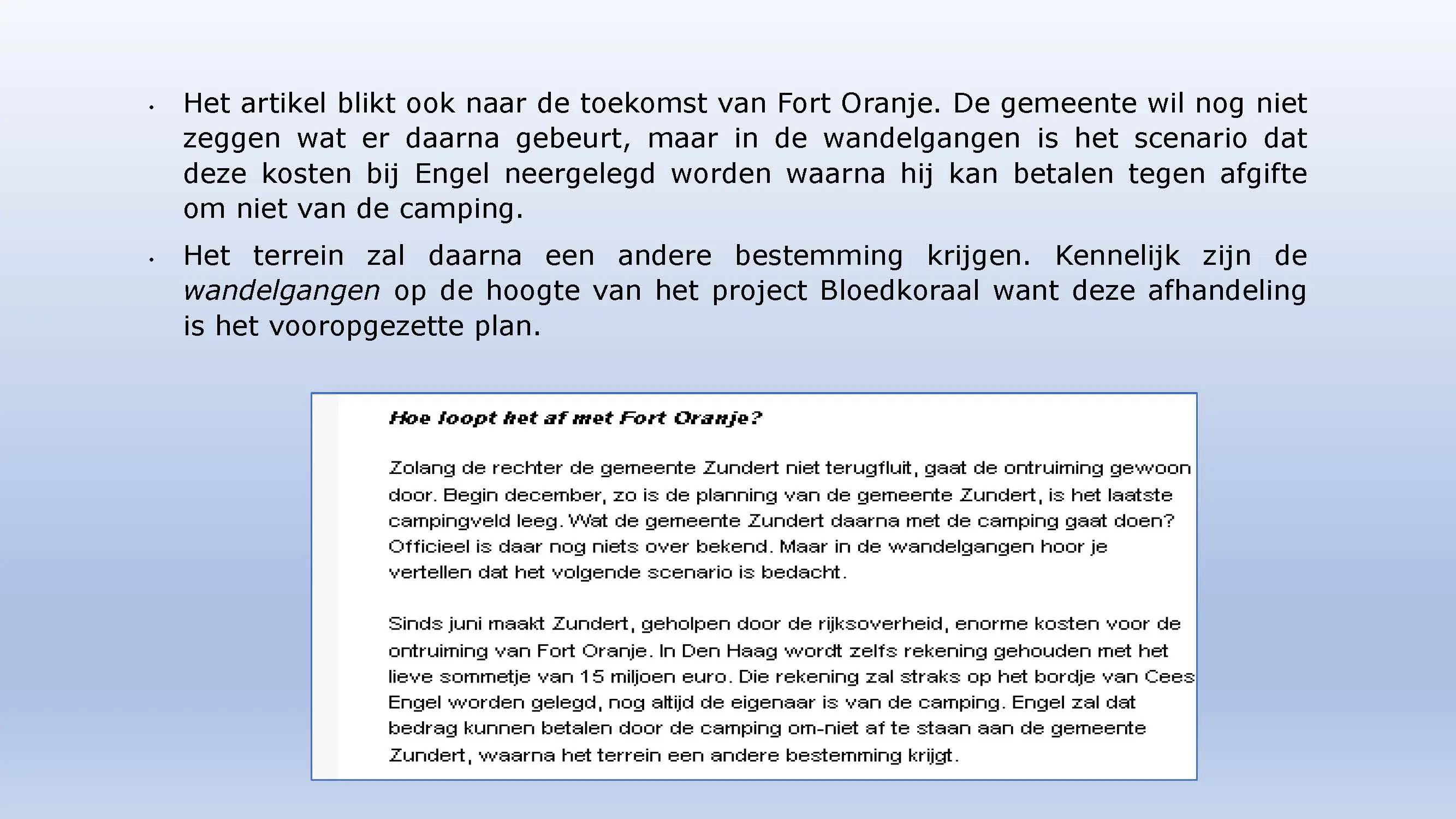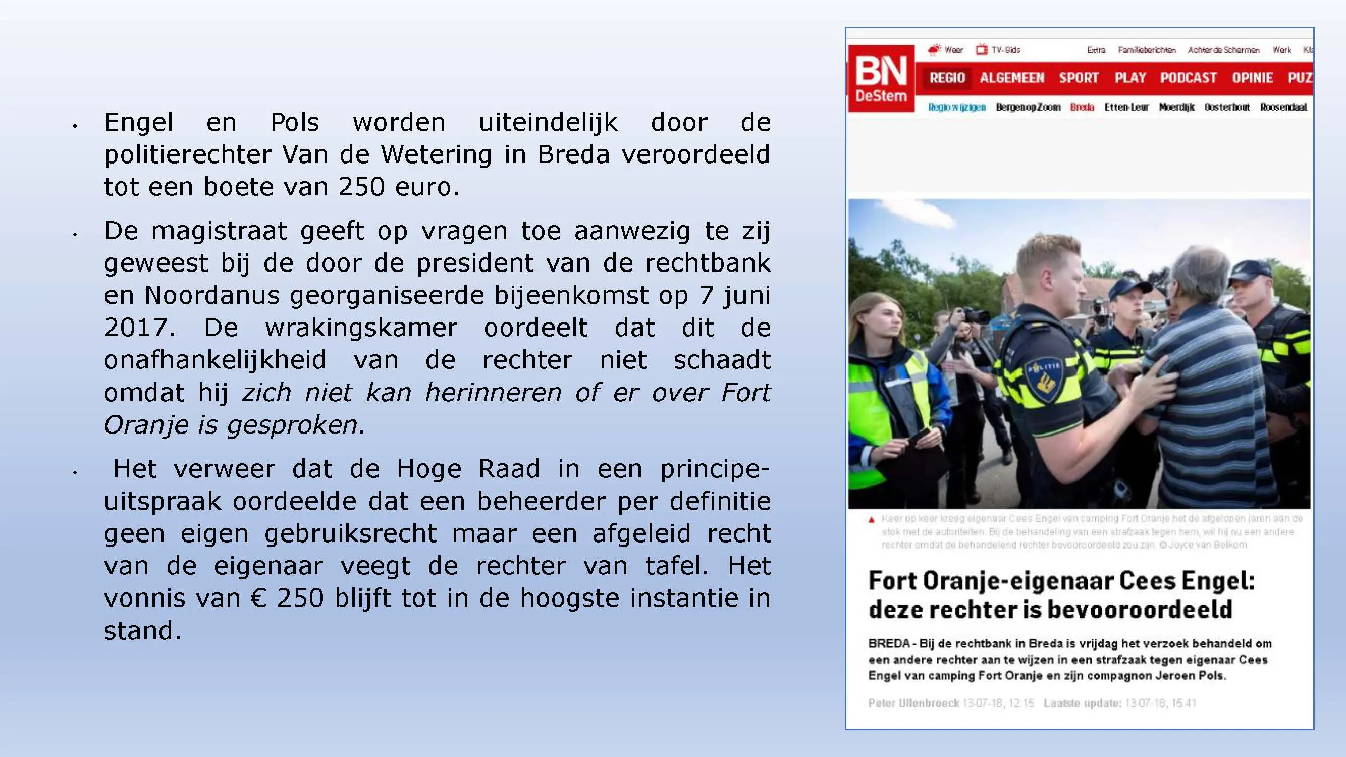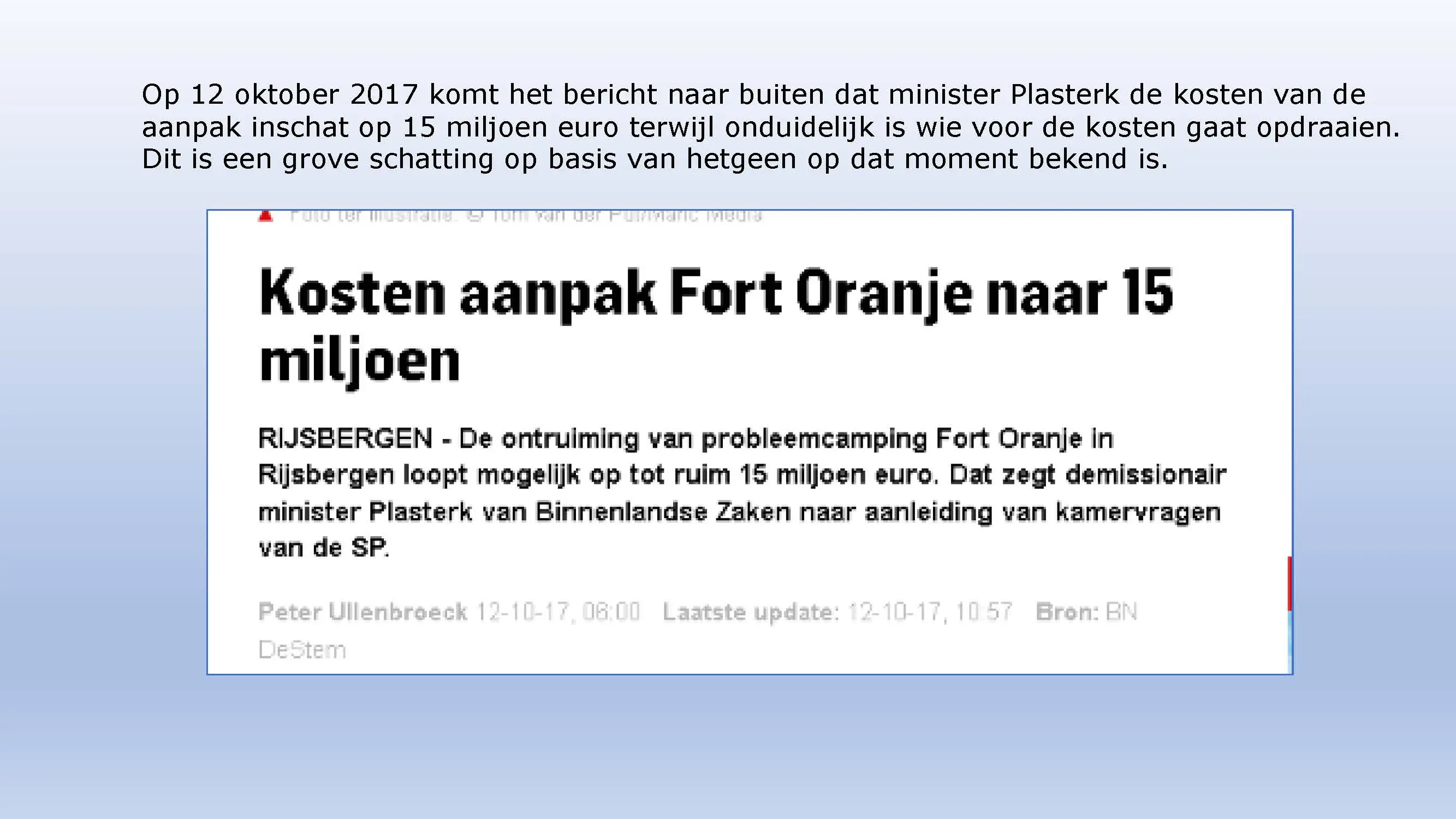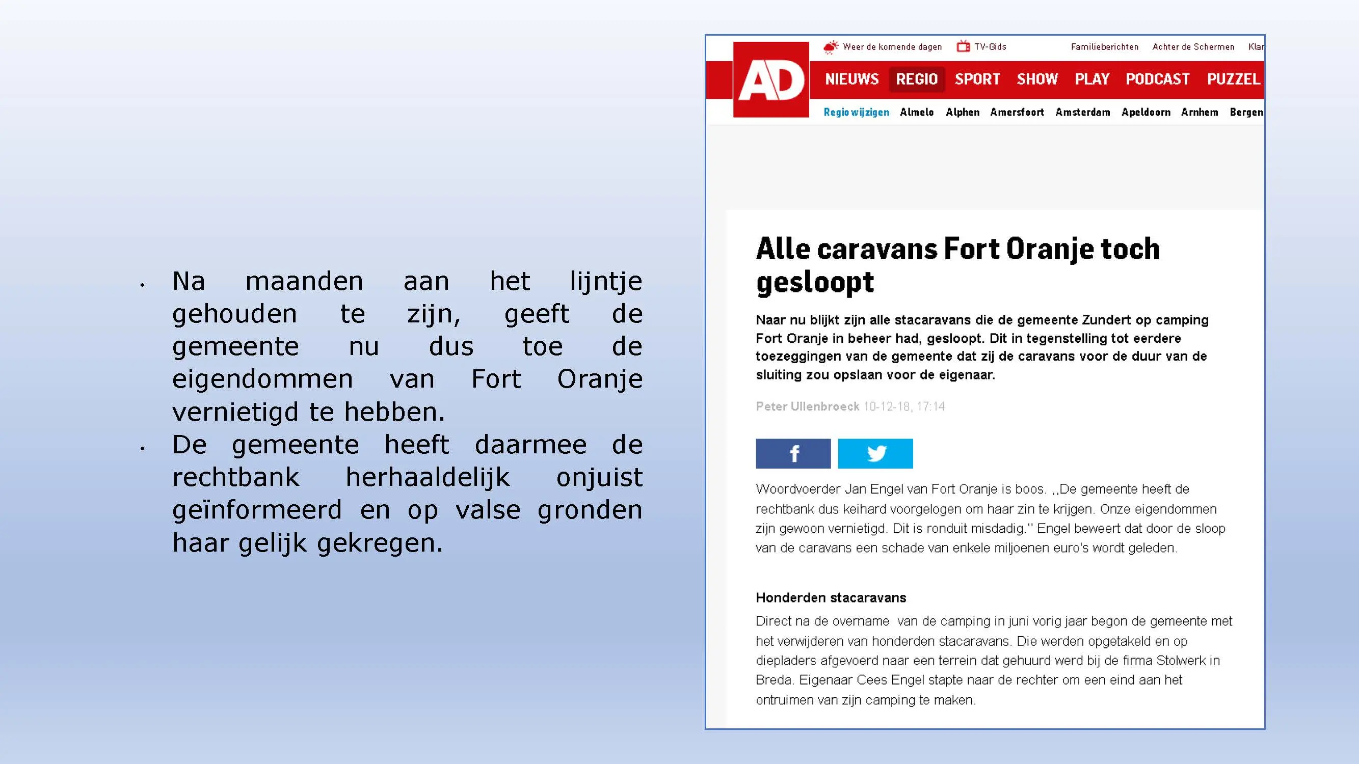 Wat hebben ze daarna gedaan? Vooral bedrog gepleegd, valsheid in geschrifte, rechters voorgelogen. Zelfs de media zich ging afvragen of het optreden van het bestuur nog wel rechtmatig was. Ondanks dat er al vaststond dat er geen bevoegdheden waren, is de camping in beslag genomen, is de eigenaar gearresteerd door middel van een gebiedsverbod, en zijn alle caravans afgevoerd en gesloopt geheel tegen het plan van aanpak in. Volgende week nemen Jeroen en Willem de rekeningen door, namelijk alle beslagen en alle kosten die werden neergelegd bij de eigenaar om het plan te bewerkstelligen dat ie de camping niet meer van de hand kon doen.